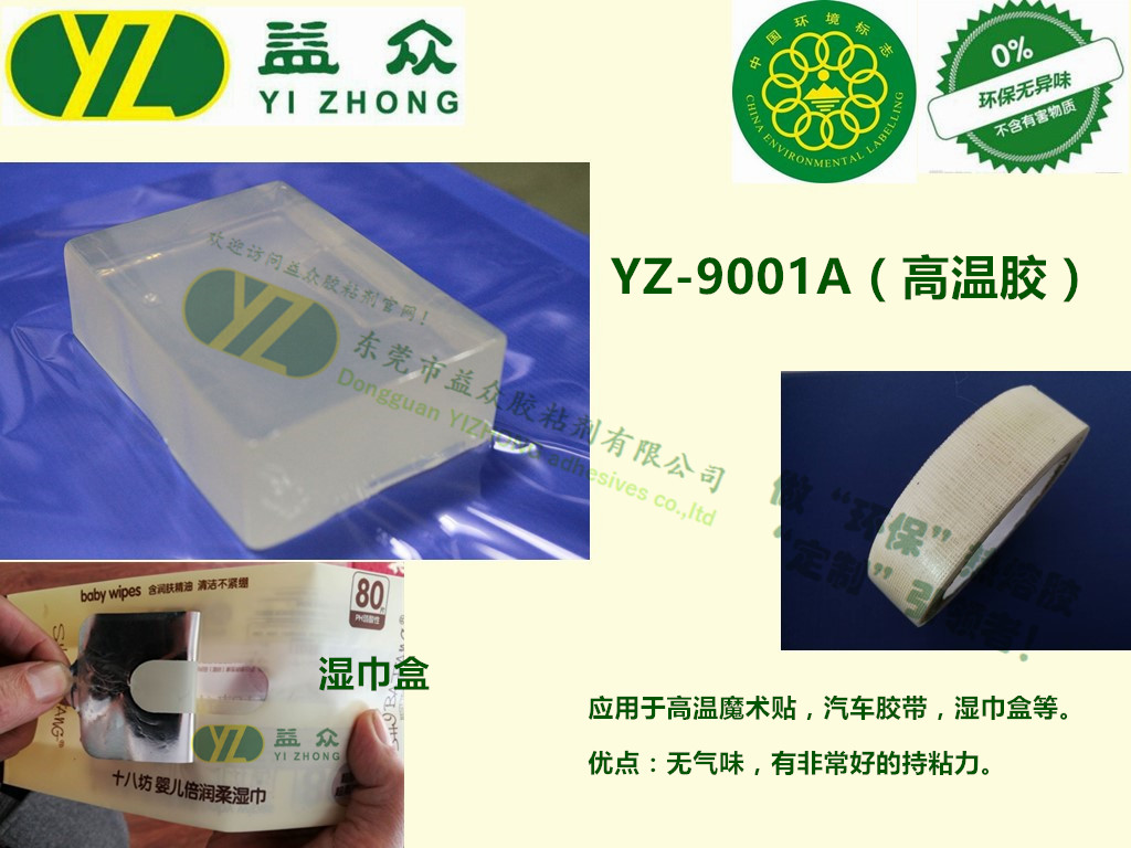 YZ9001A是一款白色热熔压敏胶,无气味,有非常好的持粘力,专业应用在魔术扣等对持粘性能要求比较高的行业上。