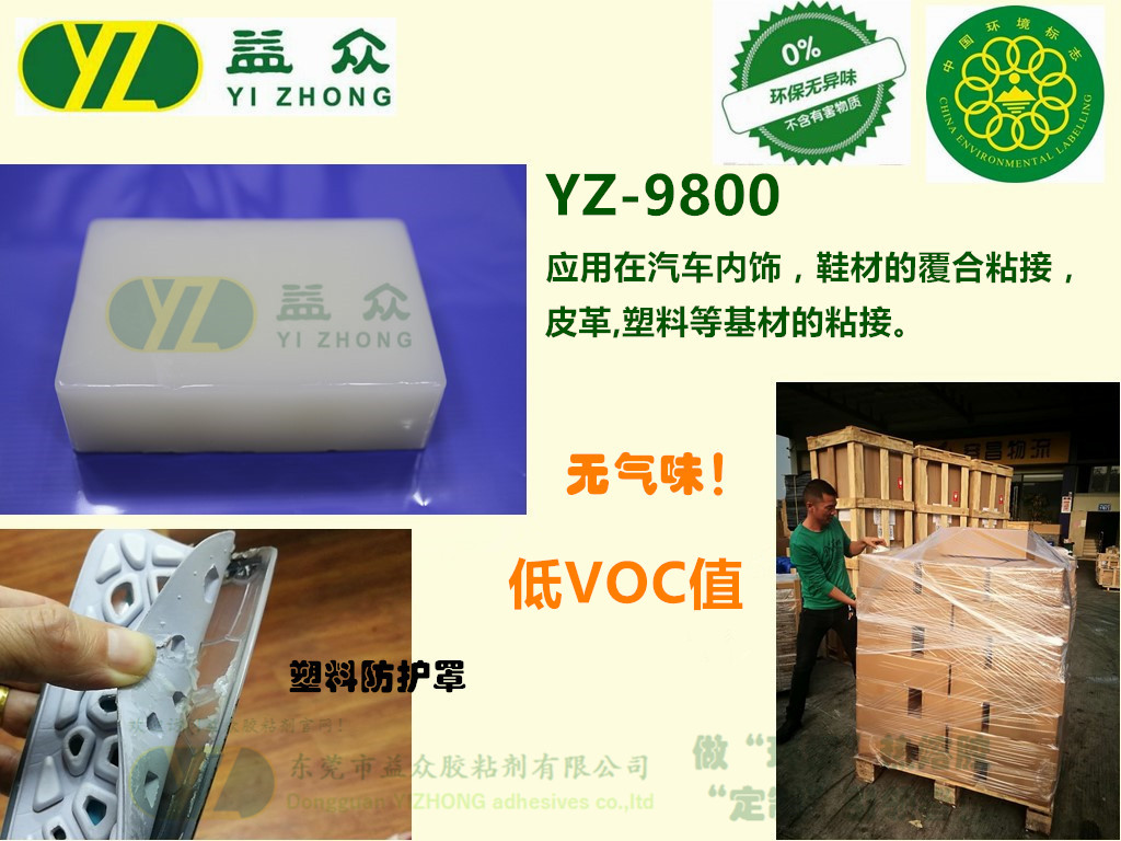 YZ9800是一款白色热熔压敏胶,无气味,有比较低的粘接强度,适合应用在汽车内饰,鞋材的覆合粘接,皮革,塑料等基材的粘接。